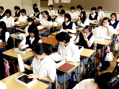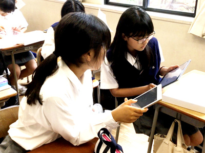 6月23日(金)には中等科3年、6月24日(土)には中等科1年、6月28日(水)には高等科1年にiPadが渡されました。これで5学年がiPadを持つOne to Oneの教育環境が整いました。デジタルとアナログ、それぞれの良いところを活かした授業展開を進めて参ります。英語の多聴多読、各教科におけるグループワークや調べ学習、プレゼンテーション、実験記録の作成など、iPadの用途は多岐にわたります。