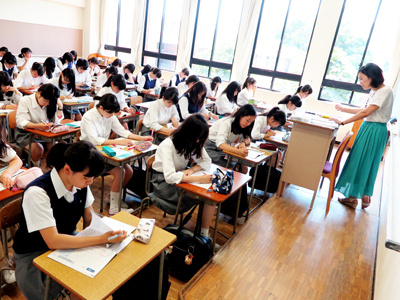 そして高等科3年の夏期講習は、英語標準、英語発展、数学Ⅰ型、数学Ⅱ型、古文、現代文、日本史、世界史、生物標準、生物発展、生物遺伝特講、物理演習、化学標準、化学発展の14講座と、立教大学推薦内定者対象のTOEIC対策講座が置かれ、香蘭最後の夏の学習に全力を尽くしています。