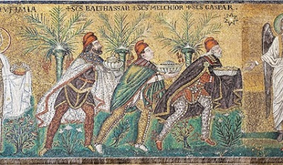 ※ イタリアのラヴェンナにあるサンタポリナーレ・ヌオーヴォ聖堂では、6世紀初頭に描かれた見事なモザイク画に、贈り物を捧げる博士らを見ることができます。