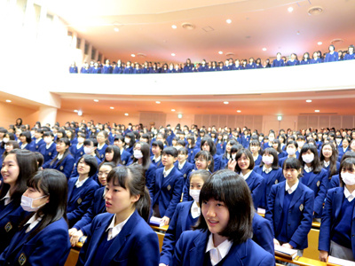 3月14日は、間もなく卒業してゆく高等科3年生が中1から高2までの在校生全員とともに捧げる最後の礼拝の日でした。六学年全員が集合した礼拝堂には、いつもとは違う空気が漂っていました。