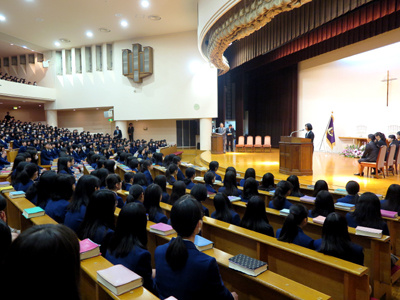 またこの日は例年、新しい年度の毎朝の全校礼拝の座席の確認があります。今年も一つ学年が上がった生徒たちが、昨年度一つ上の上級生が座っていた席に移り、新鮮なしかし心引き締まる思いをしていました。