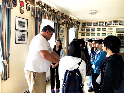 いよいよ翌5日(土)から、本格的な英語研修に入りました。午前中は教室での授業で、「Why is sport important?」という内容でディスカッションが行われました。それを受けて午後はSportsのアクティビティーを屋外でする予定でしたが、生憎の雨天だったため室内での活動とrugby clubの見学に変更となりました。ただ午後遅くになって晴れてきたため、屋外に出てrugby ballを使ってのアクティビティーを楽しむ時間もとれました。