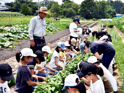 2日目は、まず午前中に浅間山の歴史を今に伝える鬼押出し園へ出かけ、班ごとに鬼押出しを楽しみました。午後は山荘の近くにある石田観光農園で農作物の収穫を満喫しました。そしてその日の夜は、それぞれのクラスがオリジナルのクラスセッションを楽しみました。