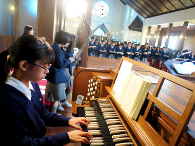 学年礼拝の特色の一つは、学年の各クラスの宗教委員が相談をして学年礼拝の準備をするです。日課聖書朗読をするのも生徒で、また聖歌の伴奏をするオーガニストも生徒がつとめます。生徒が司式をつとめることもあります。二学期も一学期に引き続き、各学年でそれぞれ学年礼拝が捧げられましたが、9月の高等科3年から11月の中等科3年までで、すべての学年礼拝が終わりました。
