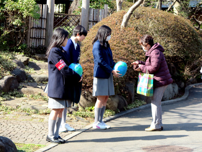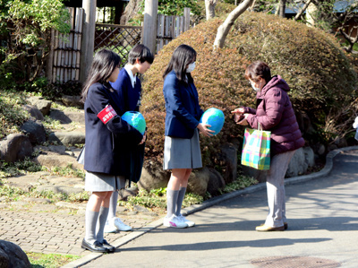 このボランティア活動を費用面で支援するために、今回の生徒会による募金活動は行われました。16日は中等科1・2年合唱会の日であったので、中等科・高等科生徒会長は募金の呼びかけを、合唱会に訪れるご家族の皆さまへ向けてアプローチでしましたが、高等科生徒会長自身も昨春にボランティアに出かけて現地で活動してきました。