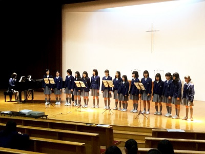 最後に行われた「英語(発展)」講座の発表は、英語の歌を全員で披露し、この発表をもって、今年度の中等科2年SE学習発表会を終えました。